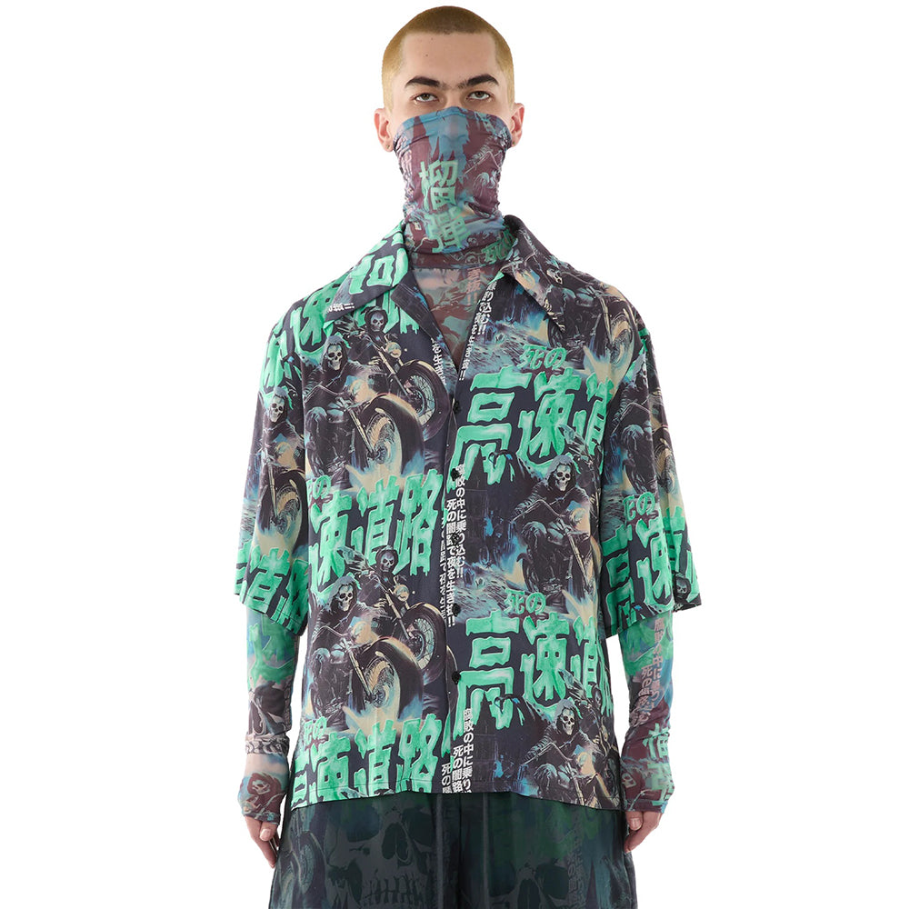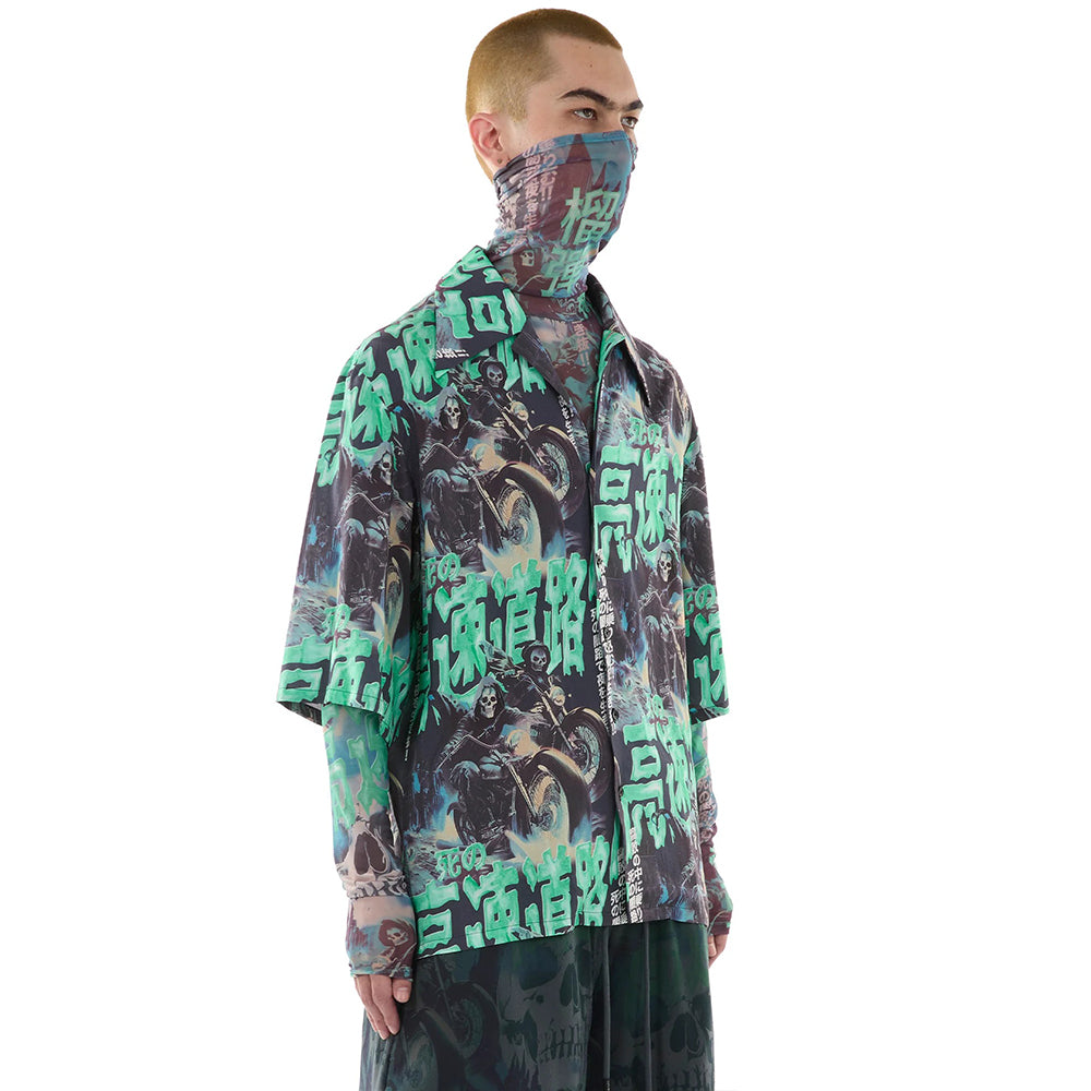 • Shirt crafted from 'Ghostriders' printed fabric