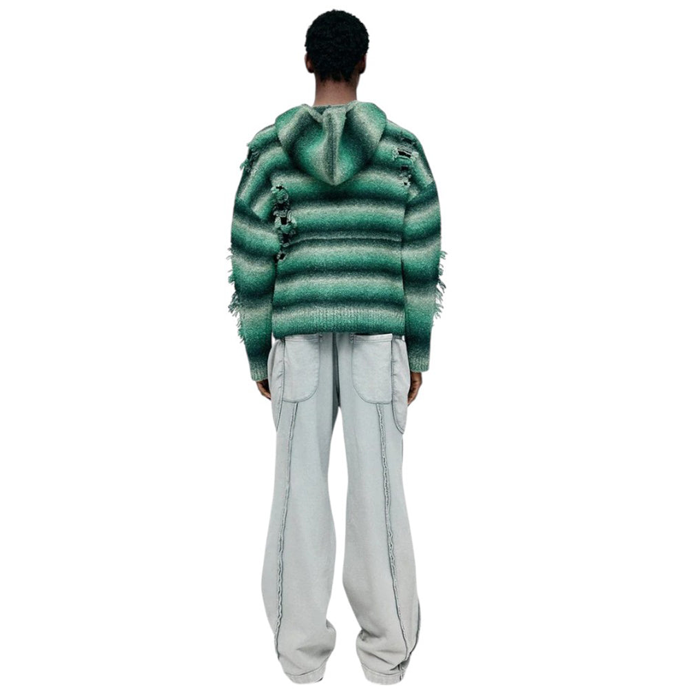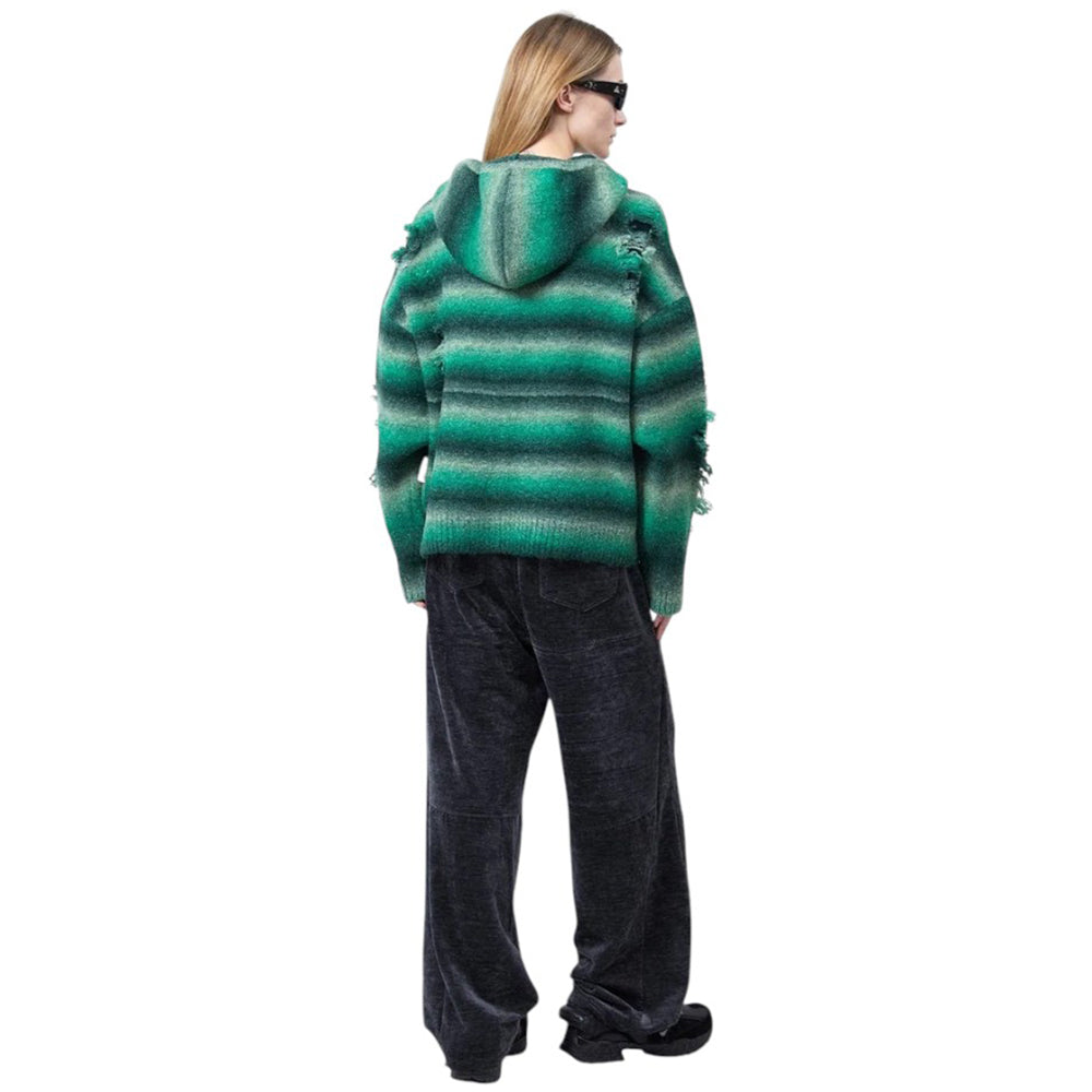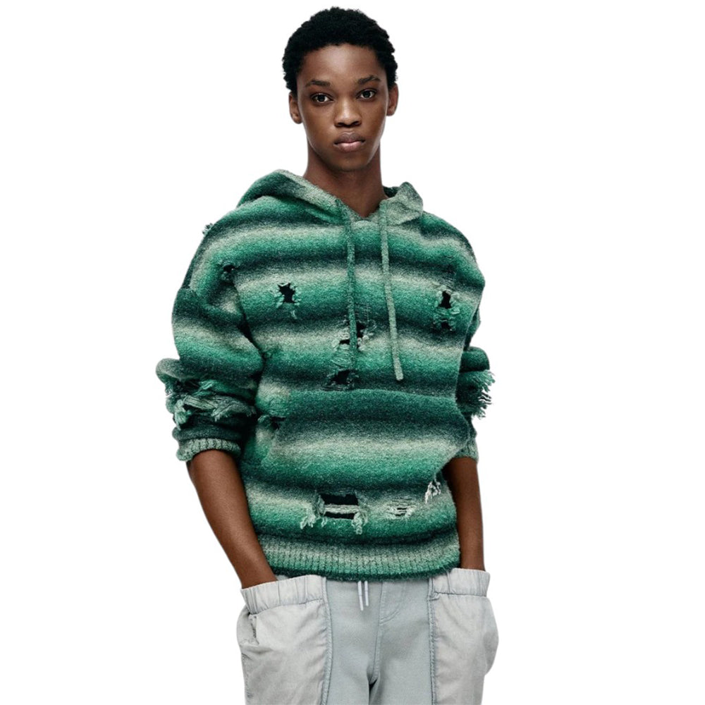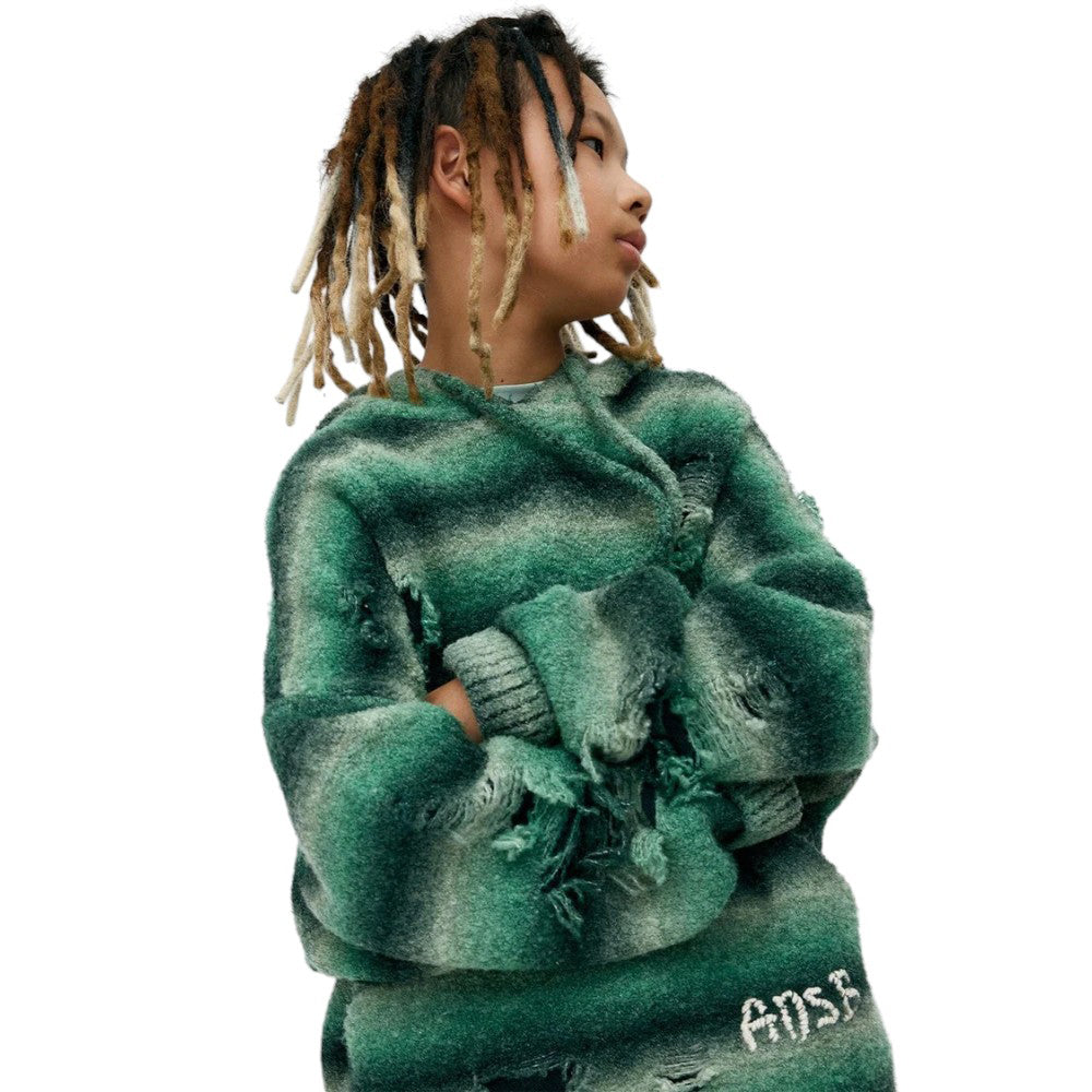 • Made with Gradient Yarn, Jacquard-Knit with Distressed Details