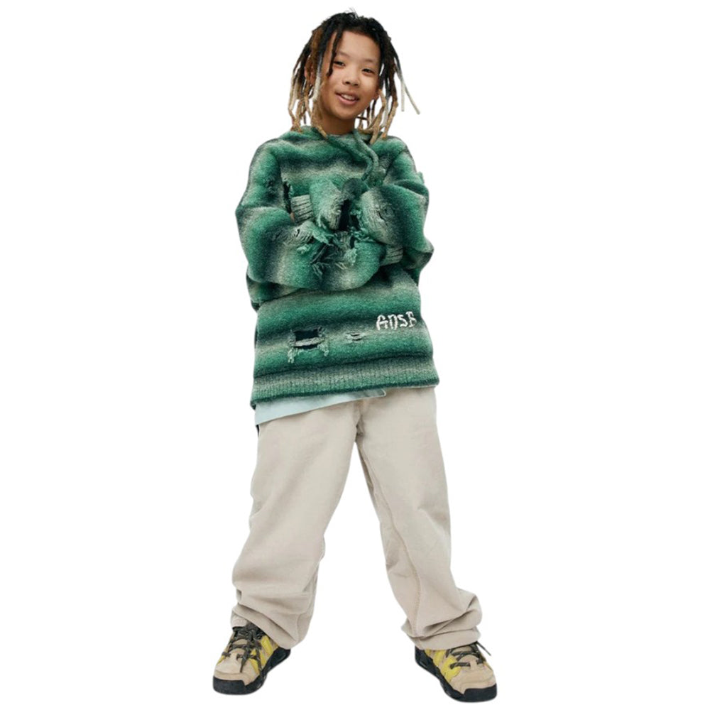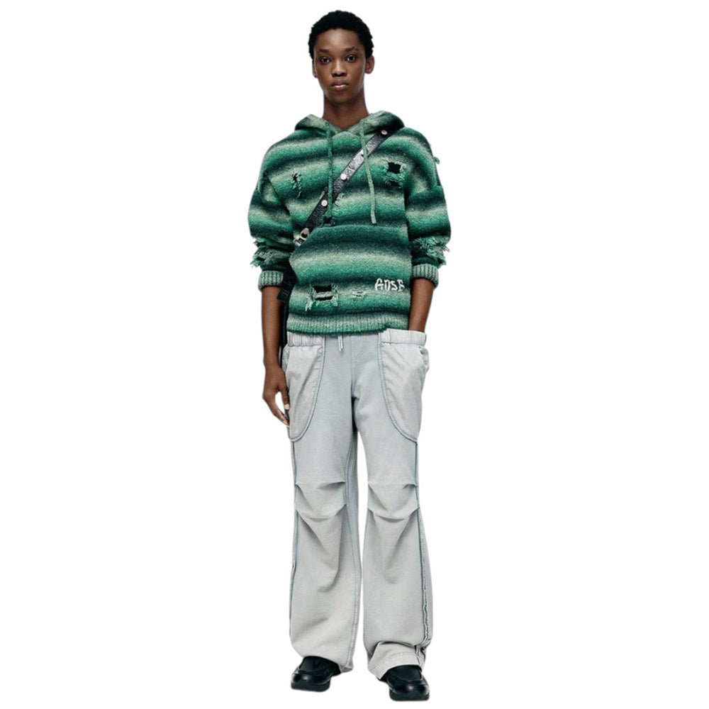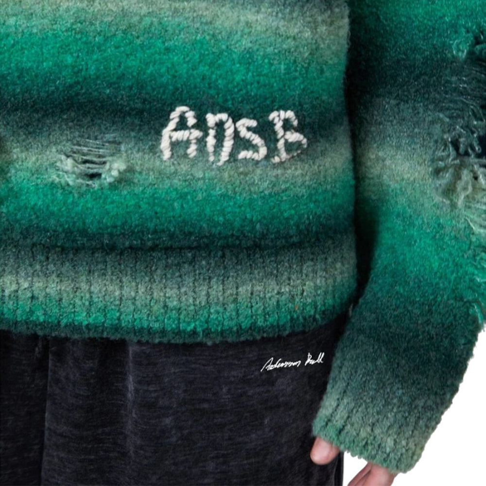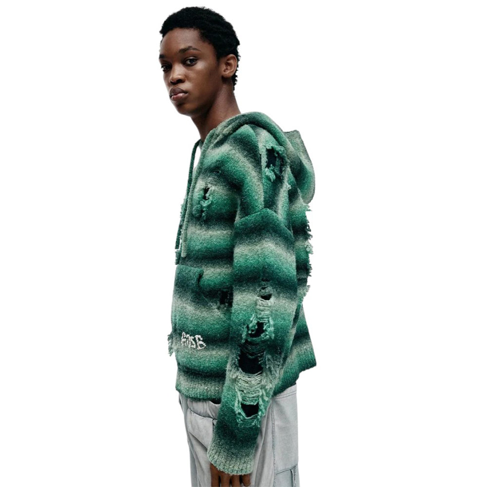 • Made with Gradient Yarn, Jacquard-Knit with Distressed Details