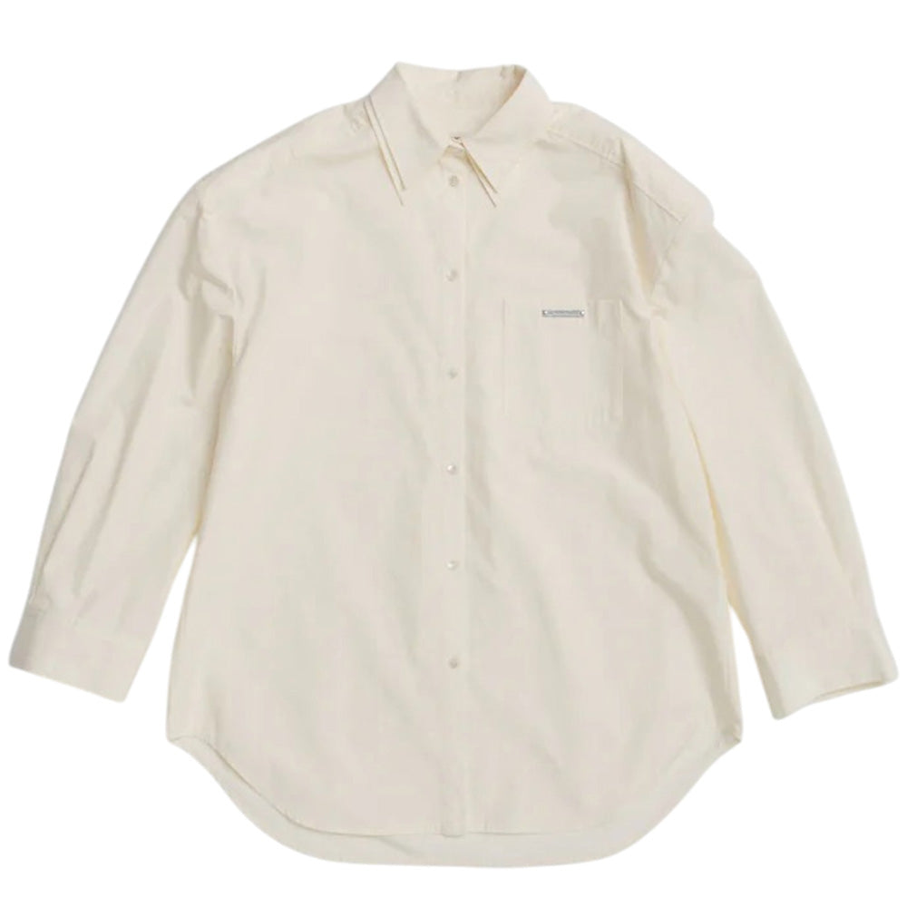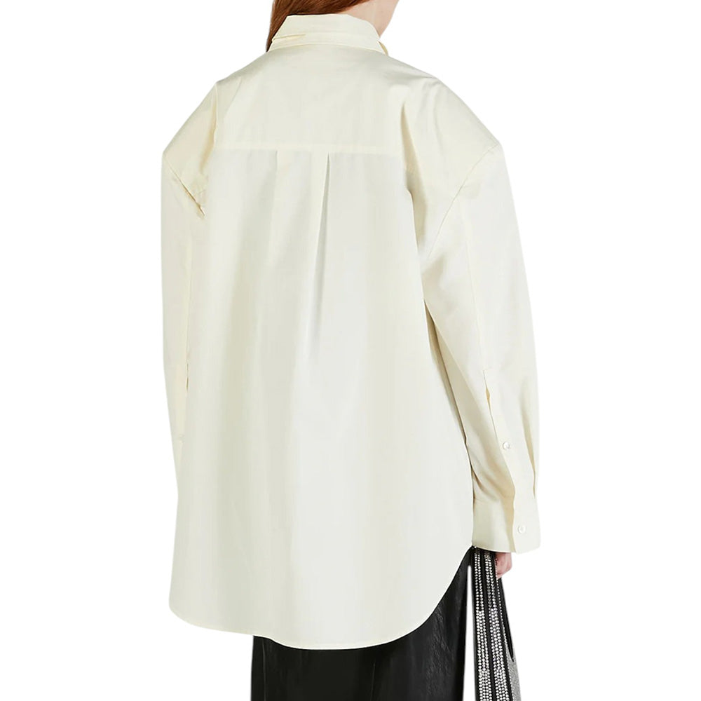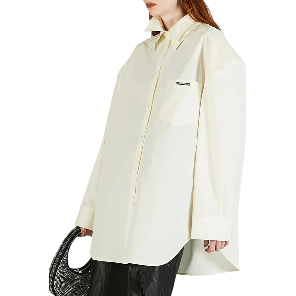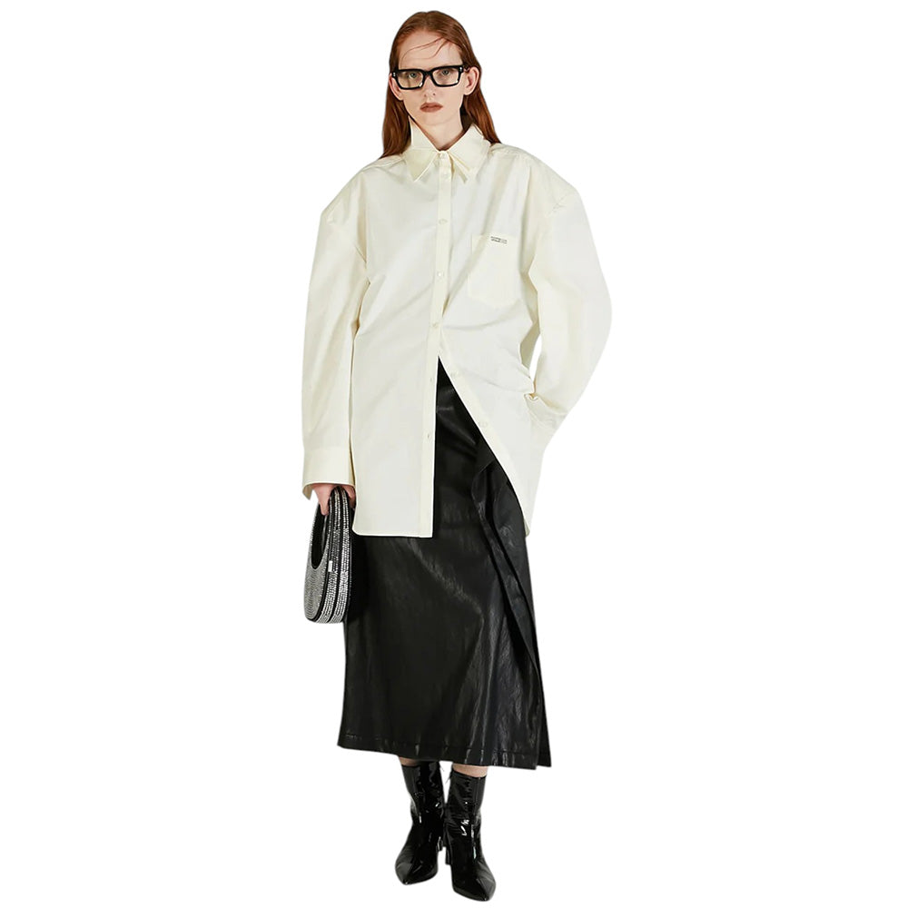• A men's-like overshirt with a distinctive power shoulder silhouette that accentuates the shoulders