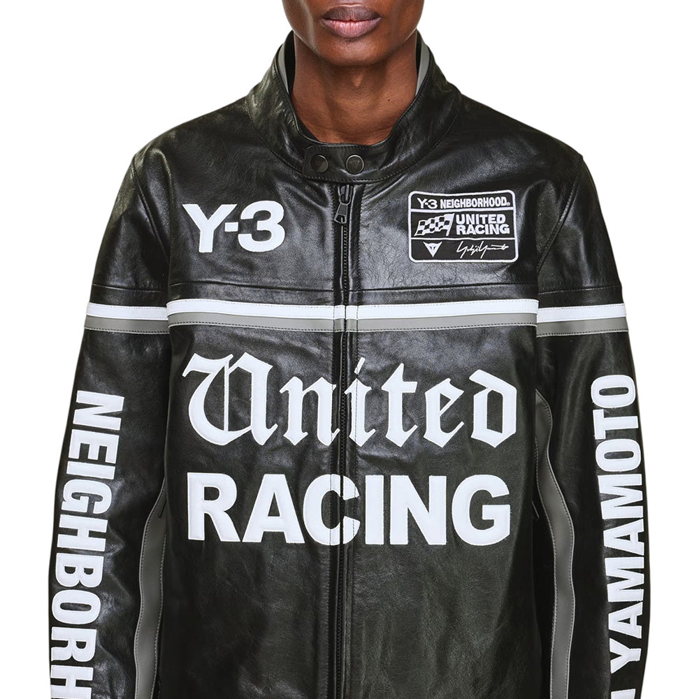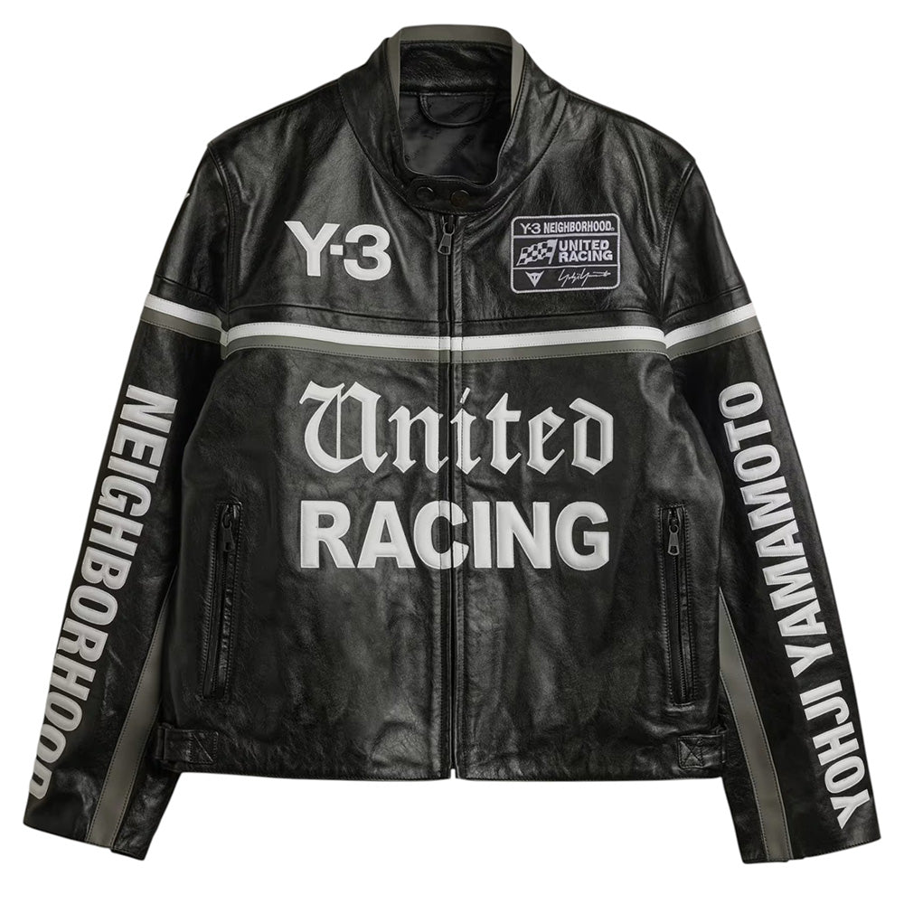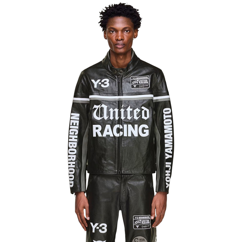 • The Y-3 NBHD leather racer jacket by adidas is a statement piece that combines the rebellious spirit of Y-3 with the timeless quality of adidas