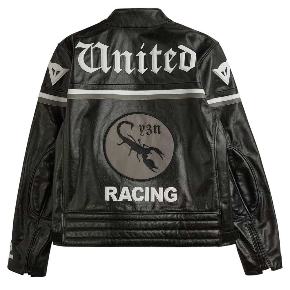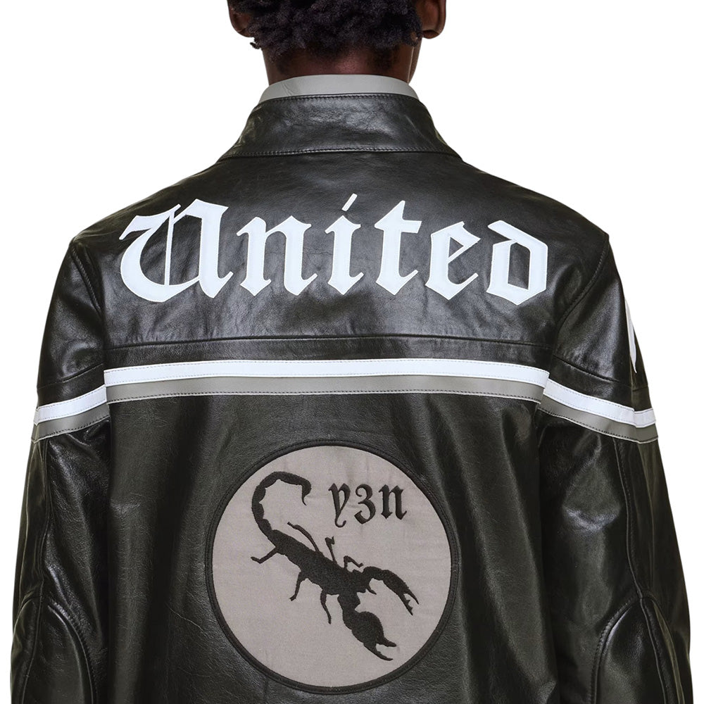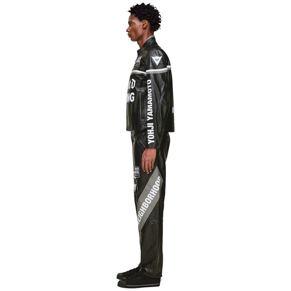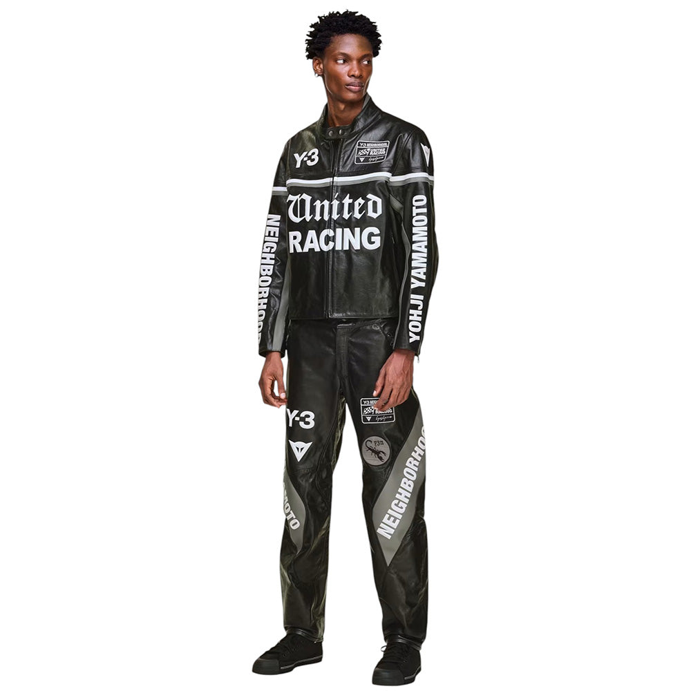 • The Y-3 NBHD leather racer jacket by adidas is a statement piece that combines the rebellious spirit of Y-3 with the timeless quality of adidas