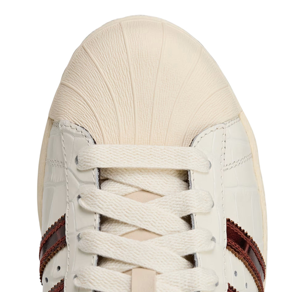 - A refined version of an unmistakable adidas silhouette, the Wales Bonner Superstar Shoes replace the expected smooth leather upper with a croc-textured embossed cow leather material on both the upper and 3-Stripes