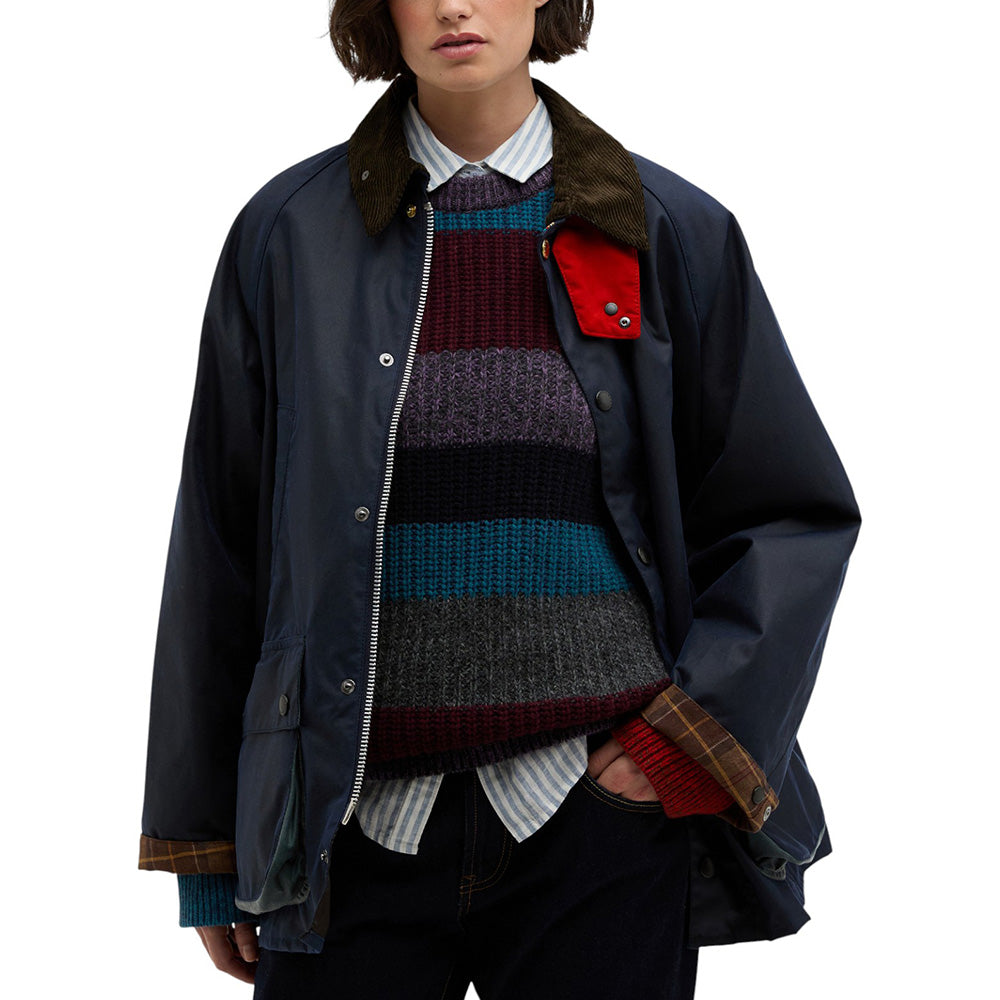• Two icons of British fashion unite in the Paul Smith loves Barbour Oversized Bedale Waxed Jacket, a reimagining of heritage style with a playful edge.