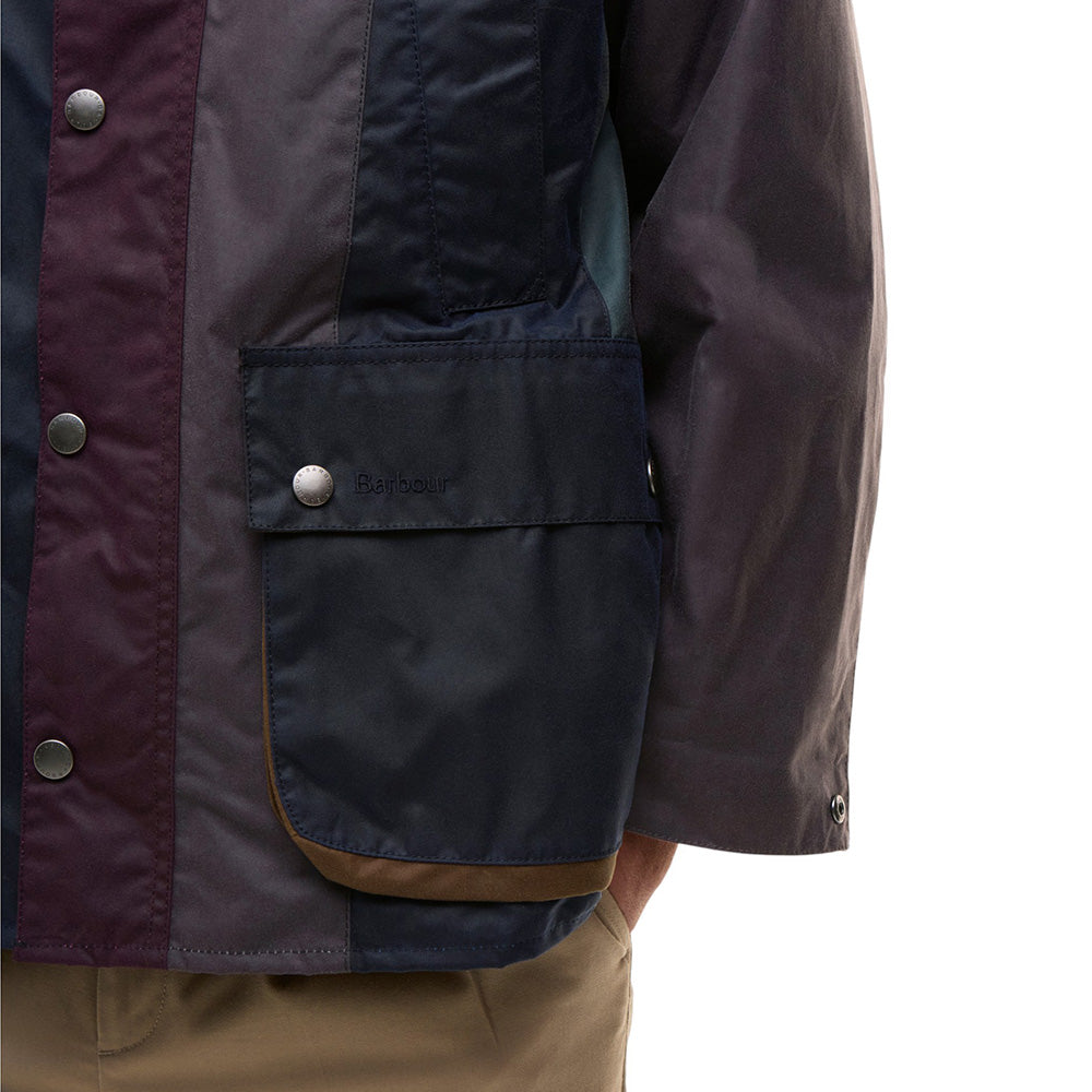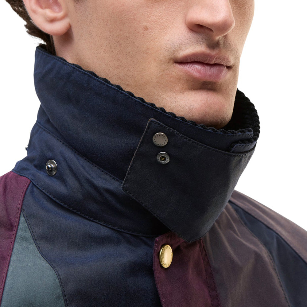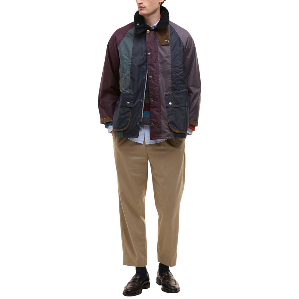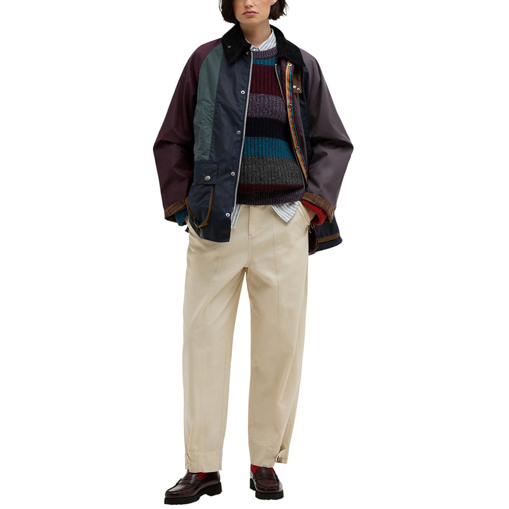 • Crafted from contrasting panels of 6oz waxed cotton inspired by Paul Smith's iconic stripes, this statement piece is an inventive reimagination of Barbour’s 1980 Bedale jacket.