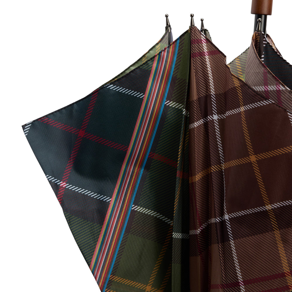- This umbrella features not one, but three classic Barbour tartans interwoven with Paul Smith’s signature multicoloured stripe, creating a design that will have you covered—in both function and flair. Barbour loves Paul Smith too.