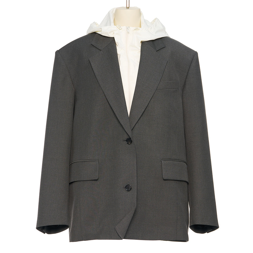 pushBUTTON DARK GRAY HOODIED SINGLE JACKET