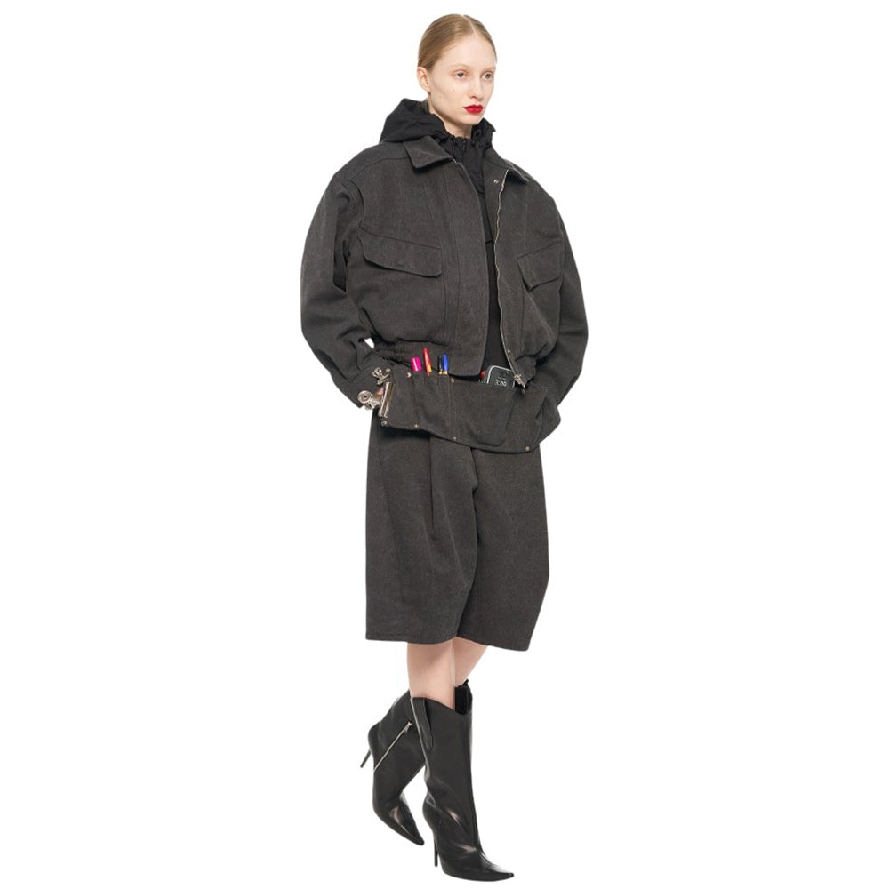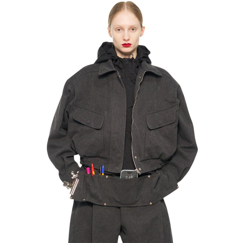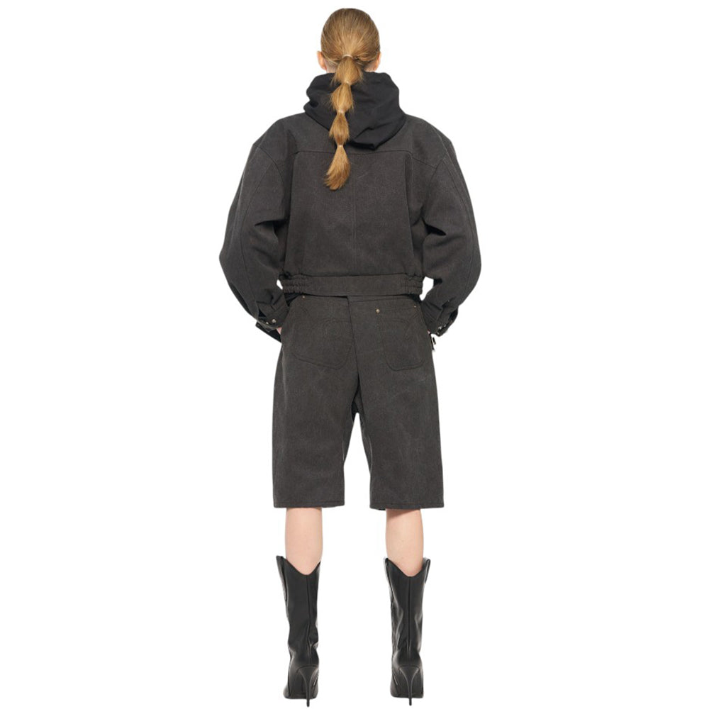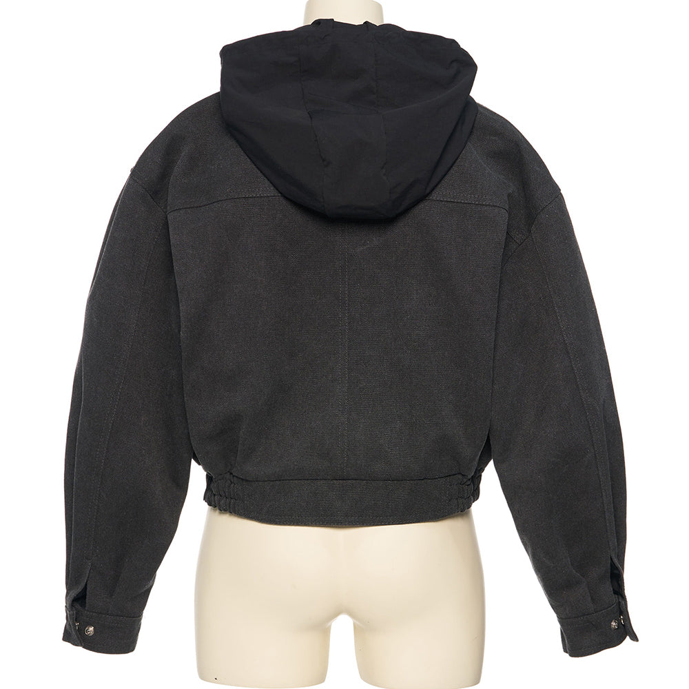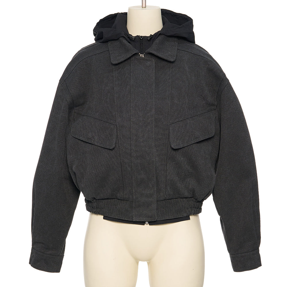 pushBUTTON GRAY HOODDIED BLOUSON