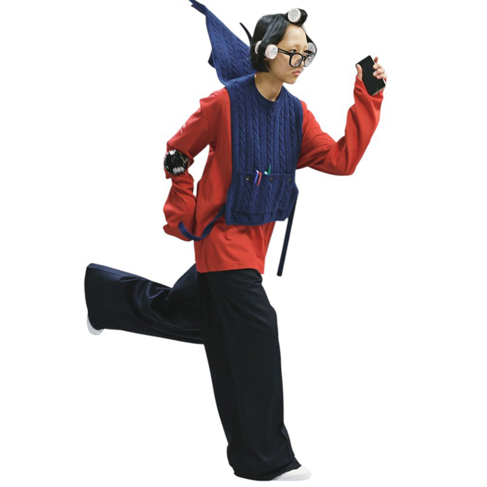 pushBUTTON UNDERLINE NAVY WIDE PANTS